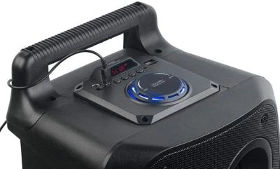 Mitsingen: Schließen Sie einfach das Mikrofon an. Sie können Ihr Partysystem in eine Karaoke-Maschine für einen lustigen Gesangswettbewerb verwandeln. Steuern Sie die Wiedergabe direkt am Gerät oder über die Fernbedienung. Mit Akku und praktischem Tragegriff können Sie Ihre mobile Partyanlage auch mitnehmen – zum Baggersee, zum Grillen im Freien oder einfach nur in den Garten.