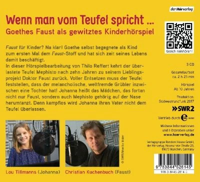 Goethes “Faust” für Kinder, wie soll das denn gehen? Dem Hörspielbearbeiter Thilo Reffert gelingt es ganz wunderbar. Denn es gibt auch noch Johanna, Fausts Tochter, von der Mephisto (und wir) bisher noch nichts wussten. Johanna hat nicht nur einen frischen Blick auf altbekannte Geschehnisse, vom Teufelspakt über Auerbachs Keller bis zur Walpurgisnacht. Sie ist auch gewitzt genug, an entscheidenden Stellen dem Teufel ordentlich Kontra zu geben. Und statt eines Vorspiels auf dem Theater gibt es einige erhellende Zwischenspiele im Hörspielstudio!