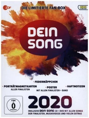 Das Format hat sich über die Jahre hinweg als Erfolgskonzept und feste Instanz musikalischer Nachwuchsförderung etabliert.Erneut meldeten sich hunderte Talente mit ihren eigenen Songideen beim ZDF und KiKA. Doch am Ende schaffen es nur acht Kandidaten ins große Finale. Zuvor bekommt jeder Finalist einen prominenten Musikpaten zur Seite gestellt, mit dem er seinen Song professionell im Tonstudio aufnehmen darf. Die Musikpaten dieser Jubiläumsstaffel sind: ILIRA, Lotte, Die Orsons, YouNotUs, Oonagh, Moritz Eggert, Annett Louisan und Kelvin Jones.In der großen Finalshow am 20.03.2020 (live bei KiKA) präsentieren alle acht Finalisten zusammen mit dem jeweiligen Musikpaten den eigenen Song vor Publikum. Im Anschluss entscheiden die Zuschauer welcher der jungen Musiker Songwriter des Jahres 2020 wird.Pünktlich zur Finalshow erscheint am selben Tag das Album zum Songwriter Contest.Das DEIN SONG Digipack (1CD + 1DVD) beinhaltet die Songs aller Finalisten aus der TV-Show, Musikvideos und Bonussongs.Die DEIN SONG Fan-Box legt noch eine Schippe drauf. Die Box beinhaltet neben dem klassischen Digipack eine DEIN SONG Federmappe, ein Poster, Magnetkarten der Finalisten und Haftnotizen.